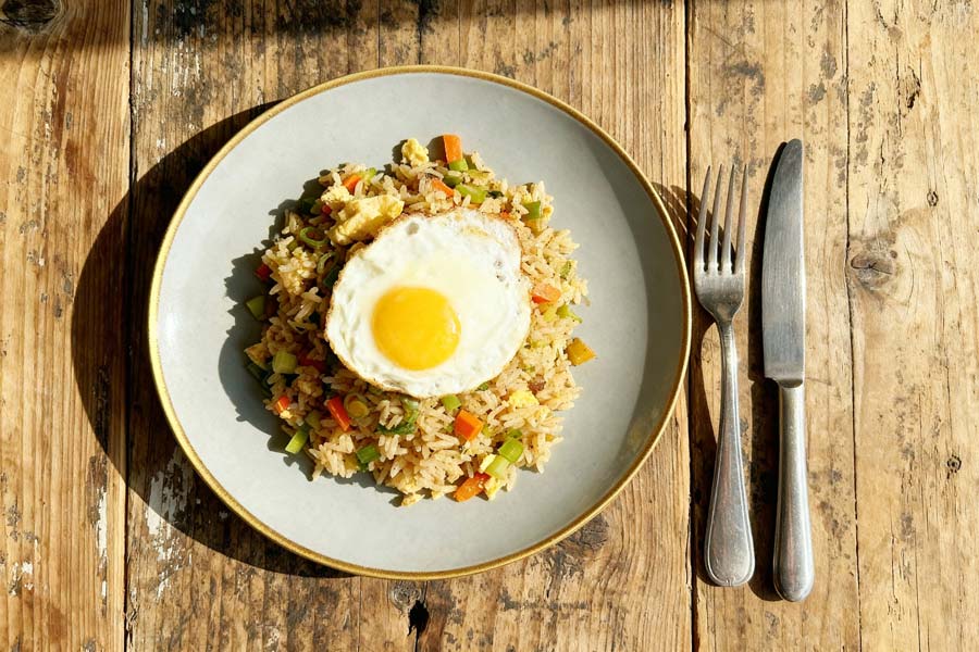 Gebakken rijst met groente en ei