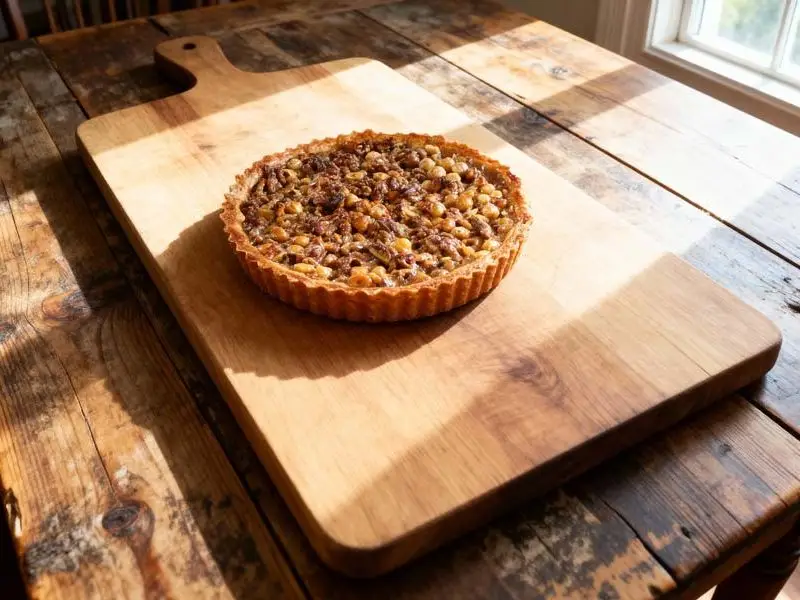Dan is er nog het deeg, de basis waarop alles rust. Een klassieke pâte sucrée, luchtig en toch stevig genoeg om de vulling te dragen zonder door te zakken. Het kneden van de boter met de bloem, het moment waarop de ingrediënten samensmelten tot een homogeen geheel, dat voelt bijna therapeutisch. Wanneer ik de taart uit de oven haal, luister ik altijd even. Ja, luisteren. Het kraken van de notenlaag bovenop de afkoelende karamel vertelt me dat ik goed zit. Dit is geen haastwerk; dit is geduld, precisie, en liefde.