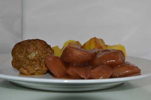 Stoofpeertjesmetgekookteaardappeleneneengehaktbalklein